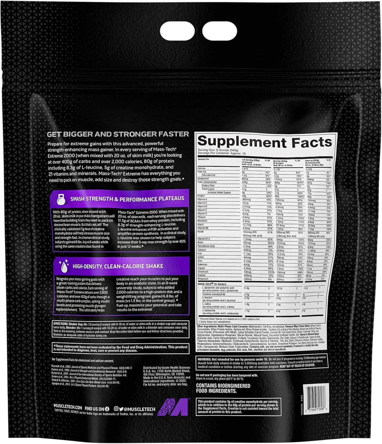• Mass Gainer Protein Powder – Mass-Tech Extreme 2000 is a 5-in-1 hardcore mass gainer designed for individuals looking to put on extreme mass. Mass-Tech Extreme 2000 has everything you need to bulk up, pack on muscle and smash through strength plateaus